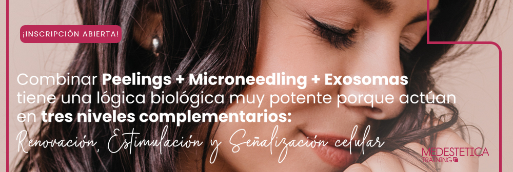 Combinar Peelings + Microneedling + Exosomas tiene una lógica biológica muy potente porque actúan en tres niveles complementarios: renovación, estimulación y señalización celular.